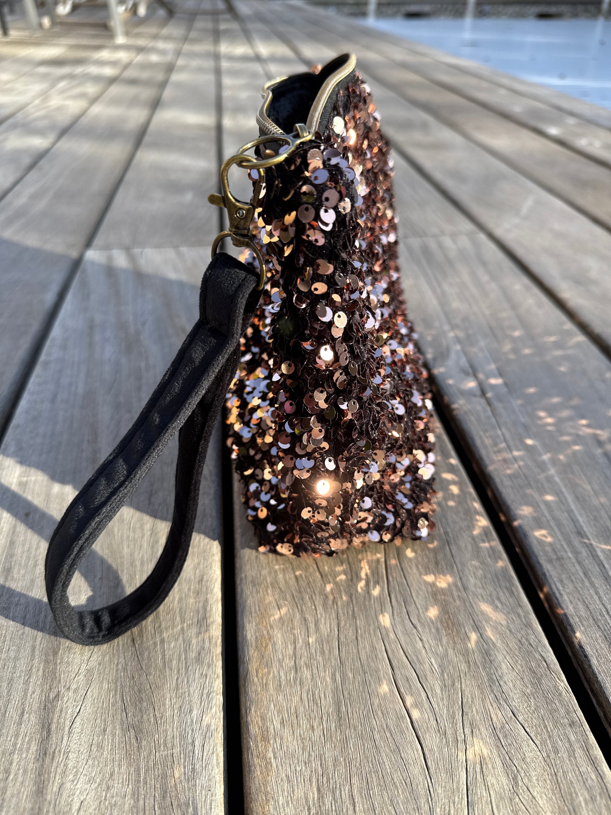 Pochette sequins rose gold avec boucle Viel or