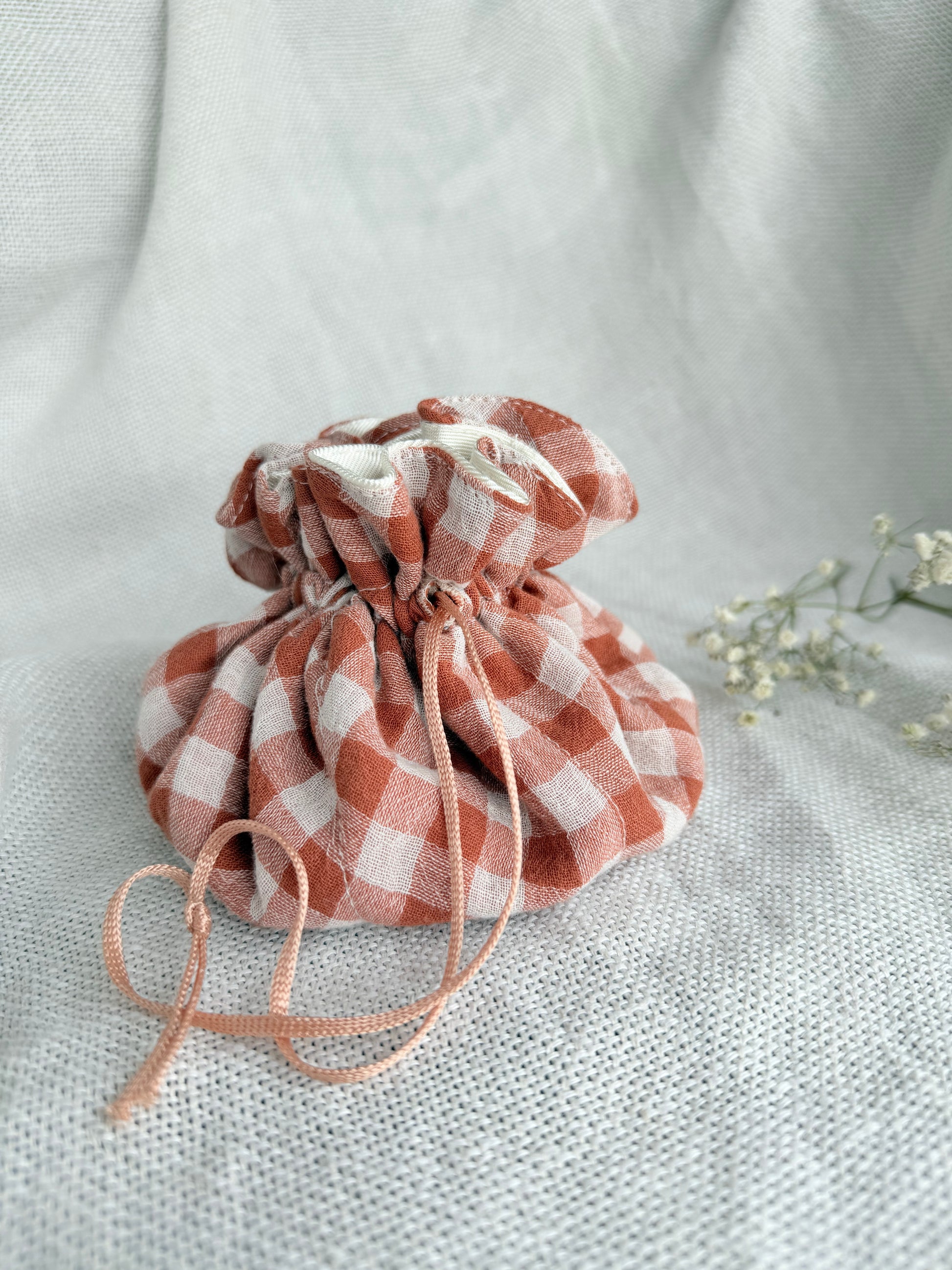 Confectionné avec soin dans des matières de qualité, il se ferme grâce à un lien coulissant qui garde précieusement son contenu. Idéal pour un cadeau ou pour se faire plaisir avec une touche artisanale pleine de tendresse.